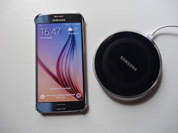 Galaxy S6 : carica batteria Wireless e Clear Cover originali Samsung.