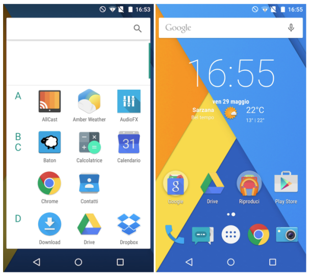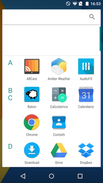 Infine, il nuovo launcher utilizzato da Android M. Si installa solo sui device con Lollipo ed è richiesta l’ app Avvio applicazioni Now.