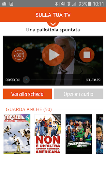 Ci sediamo comodamente sul divano, scegliamo il film o serie tv che vogliamo guardare e sempre tramite l’ applicazione premiamo il magico tasto Guarda.