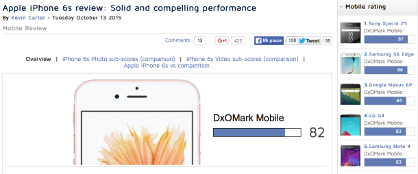 Il punteggio finale di 82 eguaglia il modello precedente, nonostante Apple abbia aumentato i megapixel (da 8 a 12).