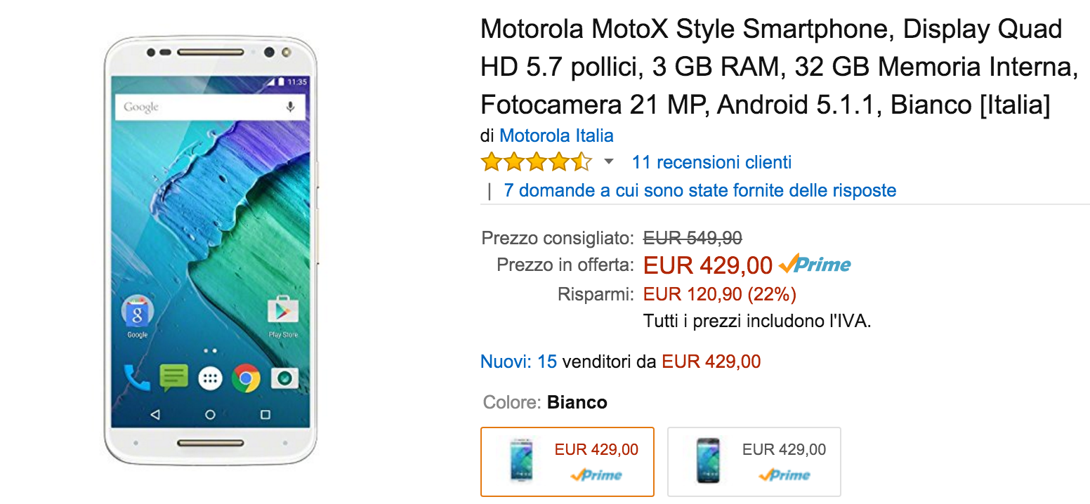 Moto X Style (versione da 32 GB) è in promozione su Amazon.it per il periodo natalizio: c’è tempo sino al 24 dicembre per regalarsi lo smartphone che ricambia il tuo amore ad un prezzo speciale.