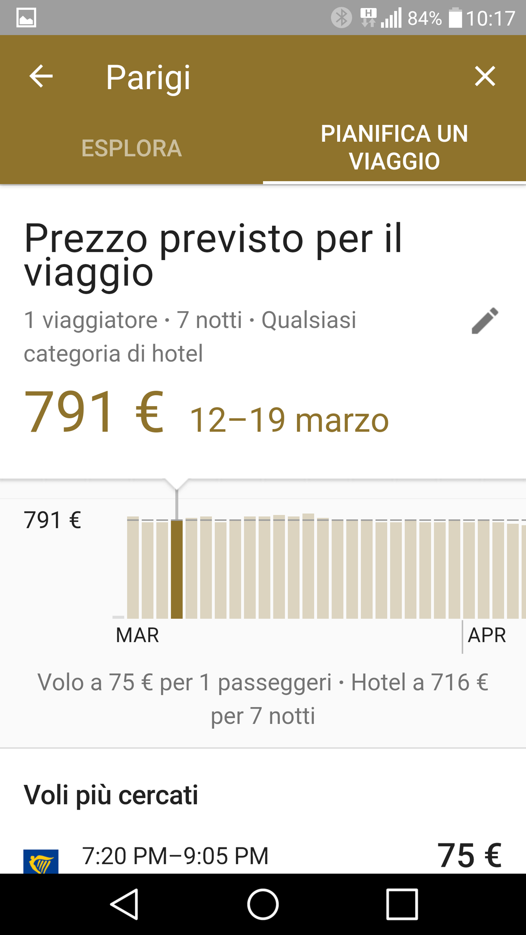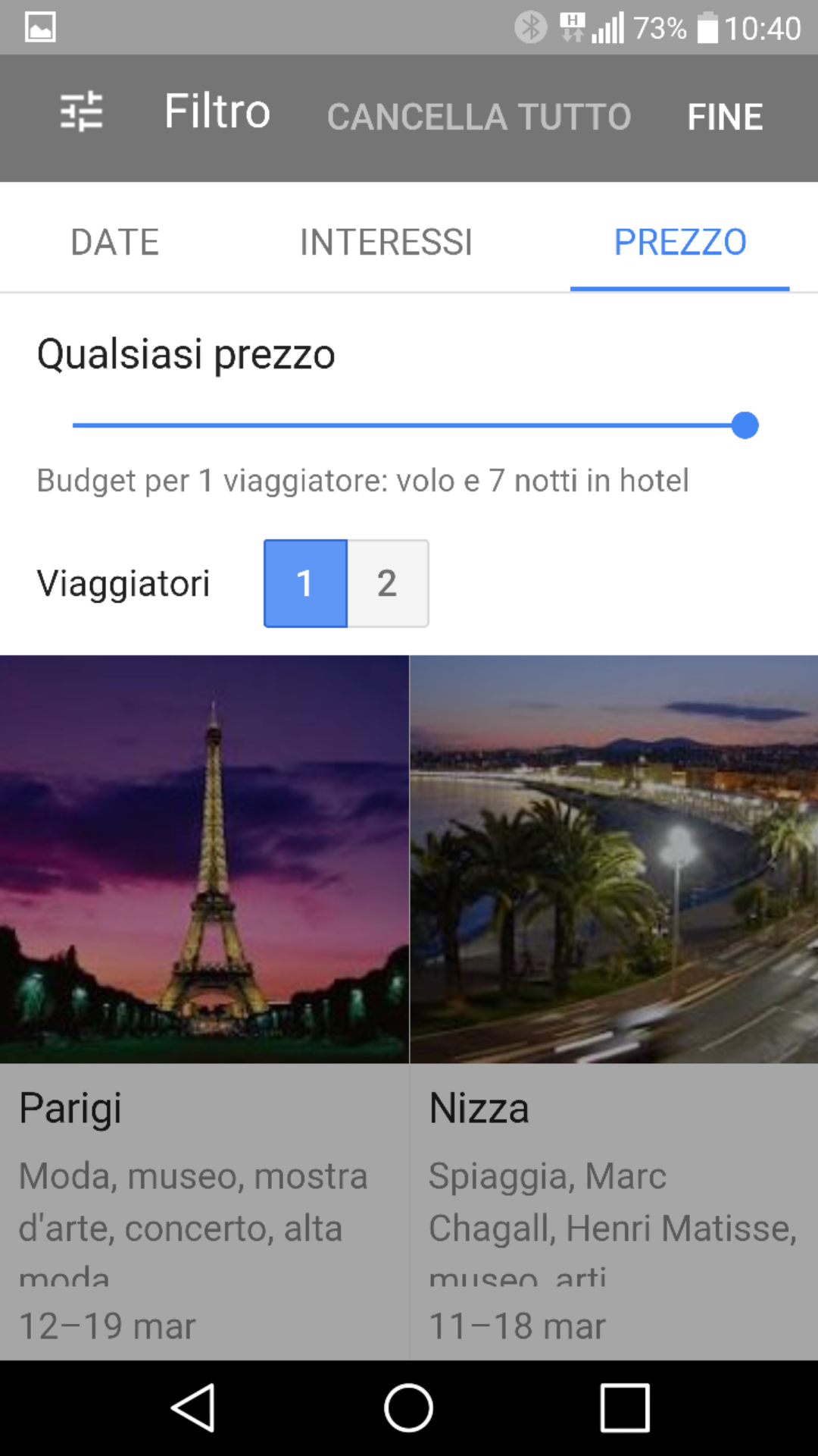 Una volta selezionata la destinazione, con “Pianifica un viaggio” potrete verificare le tariffe degli hotel e dei voli. Destinations mostrerà le tariffe minime e quelle massime dei sei mesi successivi, in modo che possiate trovare il prezzo migliore. Inoltre, scorrendo verso sinistra o destra, i risultati delle tariffe si aggiornano in tempo reale, offrendo sempre i prezzi più convenienti filtrati da Ricerca voli e Ricerca di hotel di Google. Potete inoltre cliccare sull’icona con l’immagine della matita per personalizzare i risultati con le vostre preferenze su voli e alberghi, oltre che il numero di scali, di viaggiatori e la tipologia di hotel.