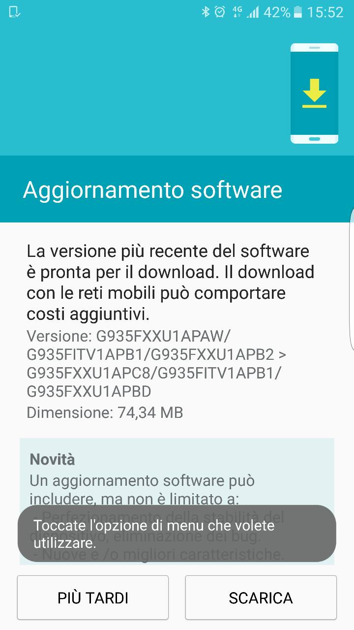 News veloce per segnalarvi la presenza di un nuovo aggiornamento Firmware per il Samsung Galaxy s7 Edge.
