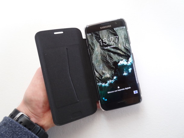 Un accessorio elegante che non nasconde le curve del nostro Galaxy S7 Edge e lo protegge da eventuali urti e cadute. Se siete amanti delle flip cover, con questa andate sul sicuro!
