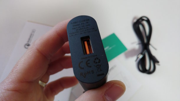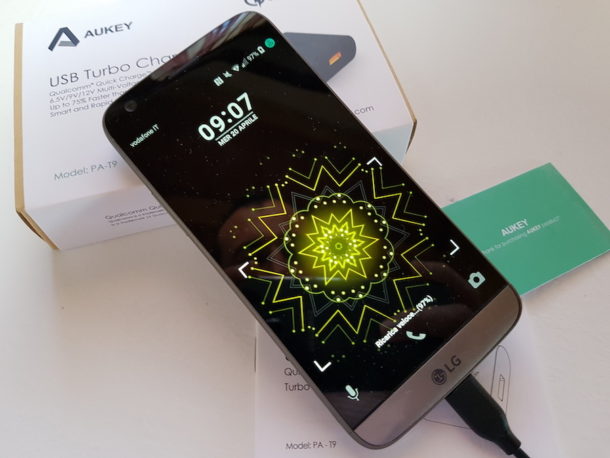 Il carica batteria in questione è compatibile con il nuovo standard Qualcomm Quick Charge 3.0 e funziona egregiamente sia con LG G5 (Q.C. 3.0) che con Samsung Galaxy S7 Edge (Q.C 2.0).