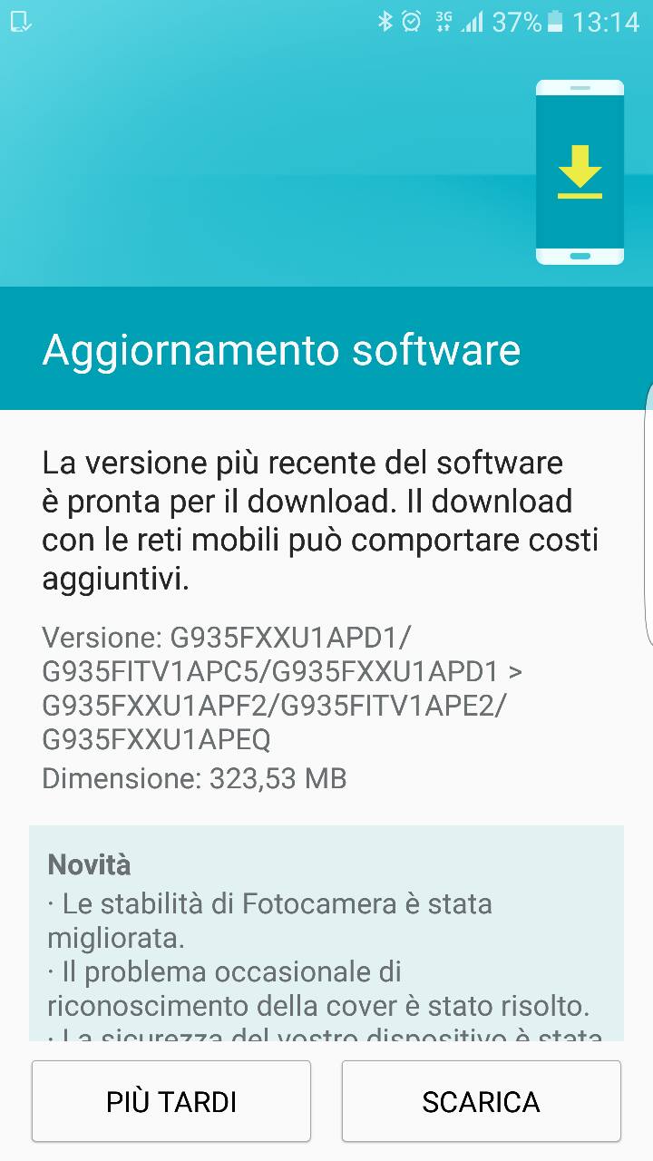 Samsung Italia ha da poco rilasciato un nuovo aggiornamento firmware per il Galaxy S7 edge no brand Italiano.