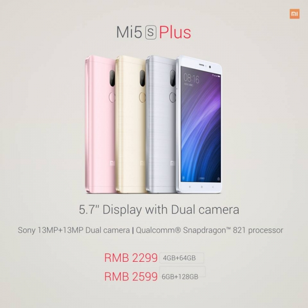 Xiaomi Mi5s Plus sarà disponibile in Cina dal 29 settembre nei colori