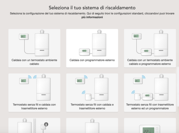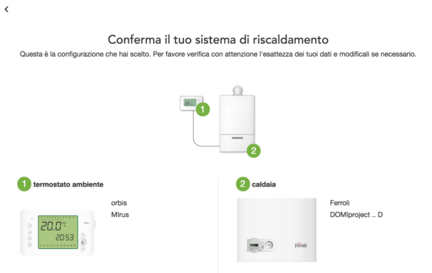 Una volta creato l’account è necessario collegare il bridge al modem, attendere che vanga rilevato e successivamente selezionare la nostra caldaia con il modello di termostato che andremo a sostituire.
