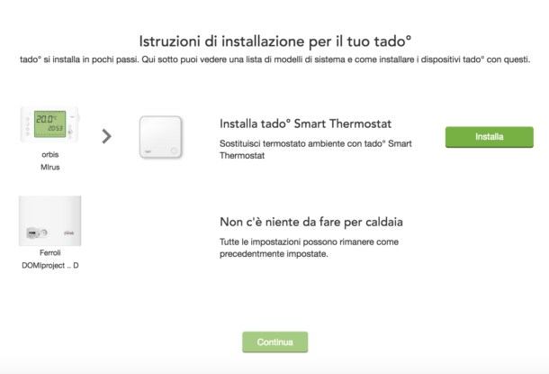 Ok, a questo punto si procede con l’installazione del termostato e premendo su INSTALLA, ci viene in soccorso una guida dettagliatissima.