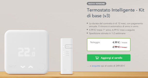 Potete acquistare tado° al prezzo di 249 euro, oppure noleggiarlo a soli 4.99 €/ mese 1° anno, 6.99 €/ mesi a seguire.
