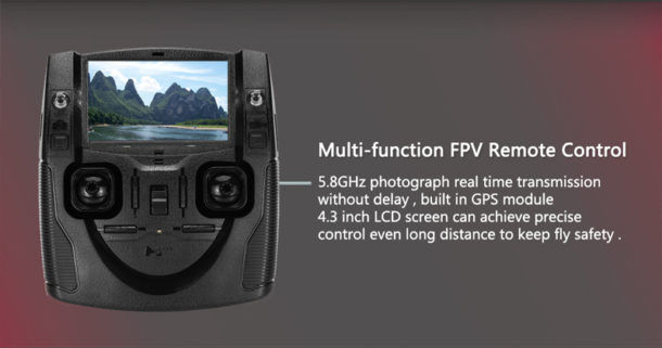 Il telecomando ha un display da 4,3 pollici e mostra le immagini in tempo reale.
