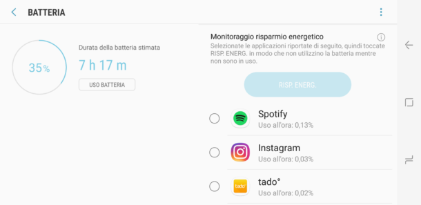 Con l’arrivo di Android Nougat 7, sui dispositivi Samsung Galaxy S8 / S8+ e Galaxy S7 / S7 edge, è stata introdotta una nuova funzione di ottimizzazione della batteria, che permette di agire direttamente sul consumo di batteria quando l’applicazione è in background.