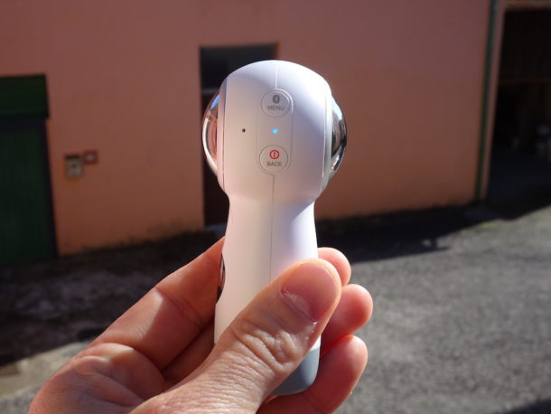 Il corpo centrale offre tutti i comandi a portata di dito, c’è un display che ci mostra cosa stiamo facendo (foto, video time lapse e altro) e in alto ci sono due led di stato che indicano quale delle due lenti stiamo utilizzando.