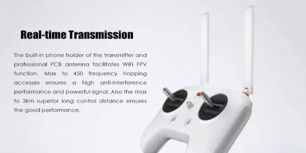 Nella confezione è presente il radiocomando che, grazie all’applicazione dedicata, è possibile sfruttarlo con il nostro smartphone e guidare il drone nella modalità FPV.