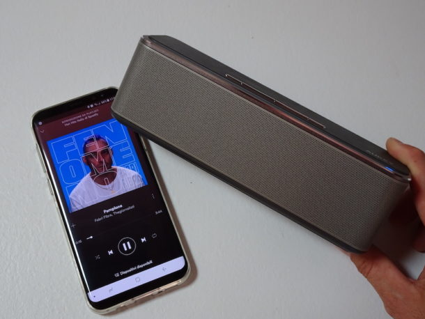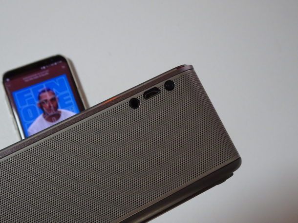 Nel retro troviamo il tasto di accensione, l’ingresso micro USB e il jack audio per utilizzare lo speaker senza collegamento BT.
