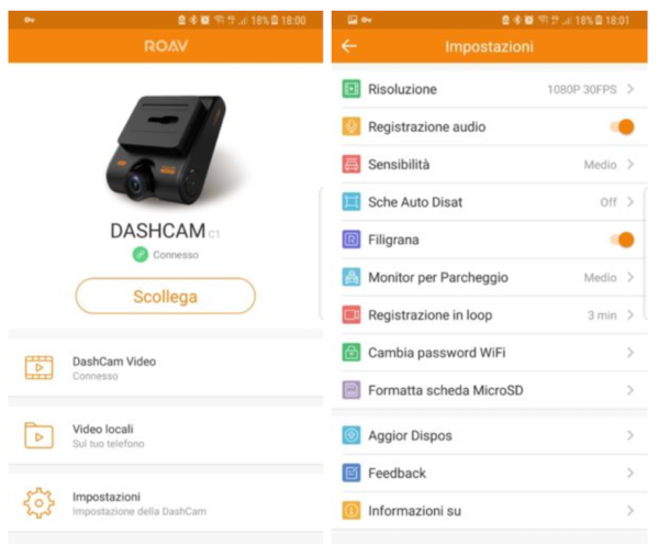 Possiamo scegliere nelle impostazioni la qualità di registrazione dei video (HD o Full HD) e se attivare anche la funzione di monitor di parcheggio.