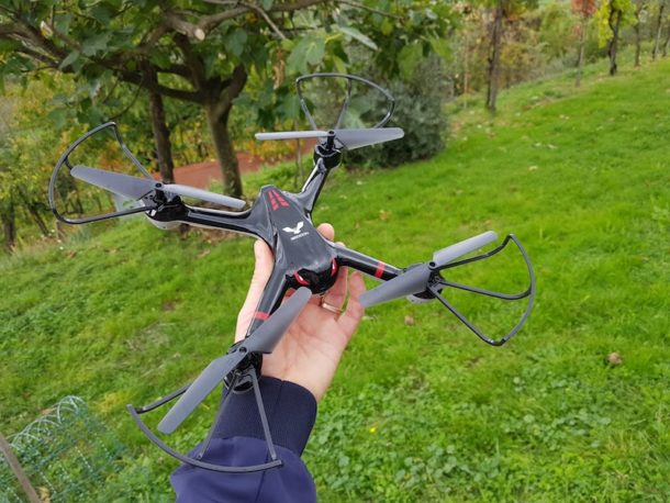 DROCON Cyclone X708 è un drone relativamente semplice da pilotare, che non ha nessun aiuto come il GPS o il Barometro ed è quindi uno strumento ideale per imparare a pilotare i Droni.