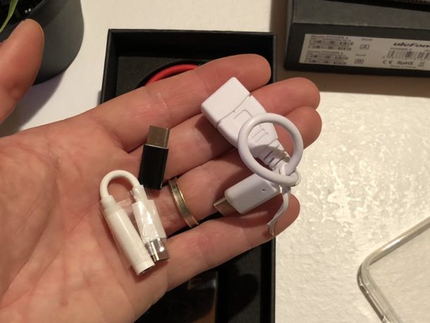 Confezione abbastanza ricca, grazie alla presenza di una cover in silicone + pellicola, carica batteria rapido, cavo Type C, adattatore Jack audio e Cavo OTG. No auricolari