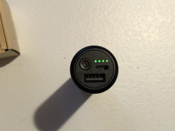 Il power bank è in lega di alluminio ed è un cilindro largo 30 mm e lungo 134 mm.