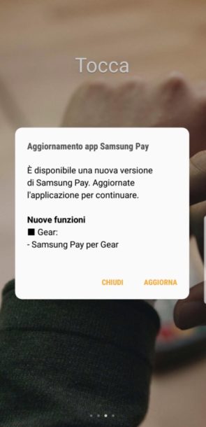 Samsung Pay è disponibile sui seguenti modelli Samsung: Galaxy S9+, Galaxy S9, Note8, Galaxy S8+, Galaxy S8, Galaxy S7 edge, Galaxy S7, Galaxy A8, Galaxy A5 2017, Galaxy A5 2016, Gear S3 frontier, Gear S3 classic, Gear Sport.