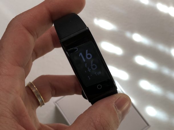 Il display è in bianco e nero di tipo OLED e mostra l’ora con la data, il giorno, l’icona BT del collegamento e la batteria. Sotto la luce del sole non è tra i più visibili.