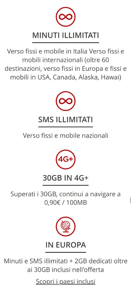 - Tutti i servizi come segreteria, avviso di chiamata persa, tethering etc. inclusi.