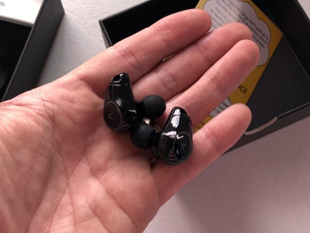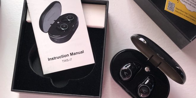 Grazie alla segnalazione di un utente (chiedo scusa ma non ricordo il nome) ho scoperto l’esistenza di un bel paio di auricolari totalmente wireless con custodia di ricarica in puro stile AirPods.