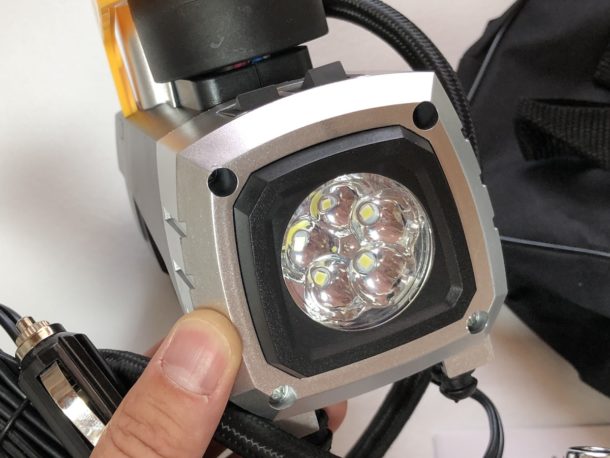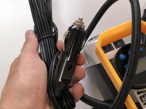 Il mini compressore si alimenta con la presa accendisigari ed ha un flusso di aria di ben 35 litri al minuto.