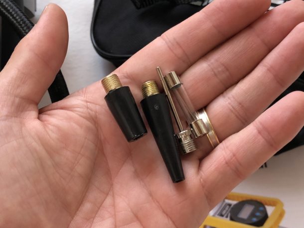 Nella confezione è presente, oltre al compressore, una comoda borsa e diversi adattatori per gonfiare qualsiasi oggetto (anche il pallone da calcio..)