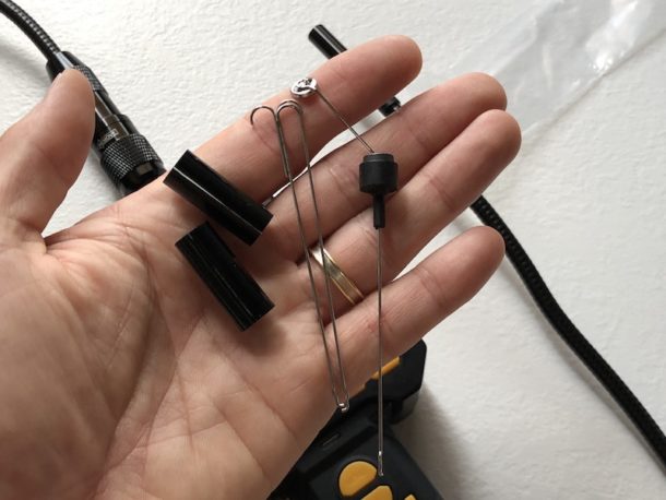 Nella confezione troviamo anche sei comodissimi accessori da utilizzare per recuperare oggetti finiti dentro un tubo o in un pertugio non raggiungibile con le mani (1 calamita e 2 ganci).