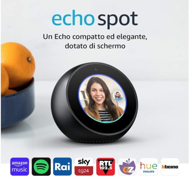 • Echo Spot – Elegante, compatto e con la comodità di uno schermo, a 129,99€ (In offerta QUI a soli 78 euro)
