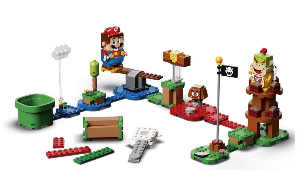 Lo Starter Pack contiene sette mattoncini azione per interagire con il personaggio LEGO® Mario™, che grazie ai suoi schermi LCD sugli occhi, sulla bocca e sul petto riesce a mostrare istantaneamente le sue reazioni al movimento, al colore e alle azioni dei mattoncini. A maggio LEGO Group e Nintendo hanno inoltre presentato una serie di Power-Up Packs – tra cui Mario™ Gatto e Mario™ Costruttore – per accrescere le possibilità di gioco con una varietà di tute per LEGO® Mario™, ognuna delle quali gli conferisce nuove caratteristiche e poteri.
