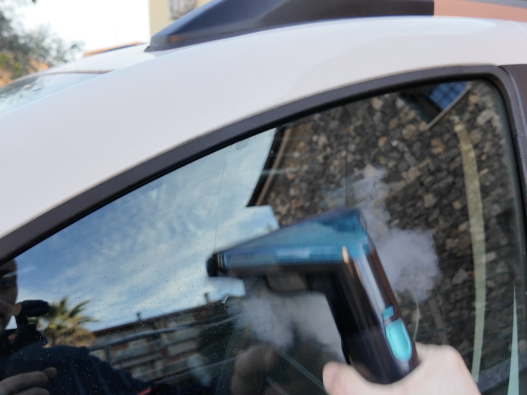 Prima rilascia acqua, poi vapore, e questo rende la pulizia dei vetri scomoda, in quanto potrebbe bagnare troppo. Se utilizzato esternamente funziona bene, il vetro lo pulisce con efficacia.