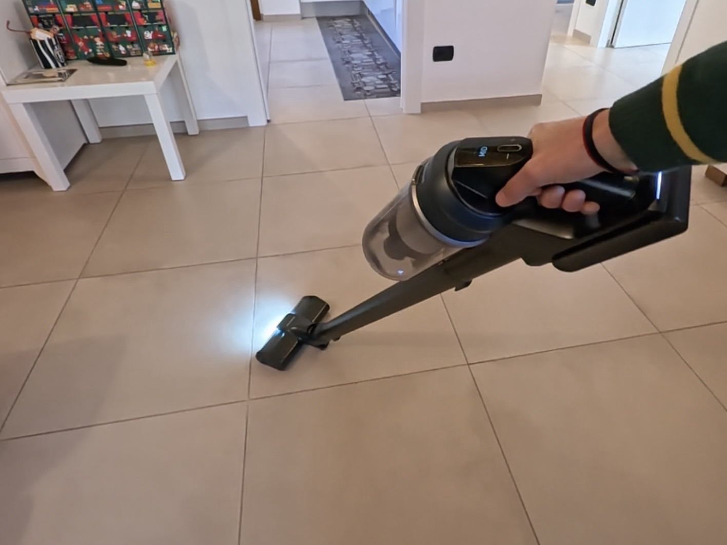 È una scopa elettrica molto leggera e ben bilanciata, facile da usare anche con una sola mano e poco stancante durante le sessioni di pulizia più lunghe.