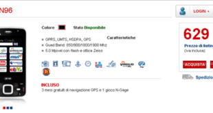 L’ amico Mioke mi informa della presenza del nuovo Nokia N96 nel negozio Online di TIM. Questa è la discussione di ICT Portal Il prezzo è di 629€, ma non è tutto.. Incredibilmente, il modulo DVB-H è disabilitato!! Non vi sono possibilità di utilizzare il telefono per vedere la TV!! …