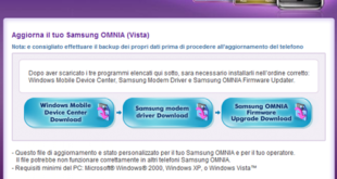 Il nuovo Samsung OMNIA sembra non andare molto daccordo con Windows Vista! Un mio collega non è riuscito ad aggiornare la ROM con Windows Vista. Mentre con Windows XP fila via tutto liscio.. Avete informazioni al riguardo?? Tornando alla ROM, la versione IHH9 migliora un pò la velocità nei menù. …