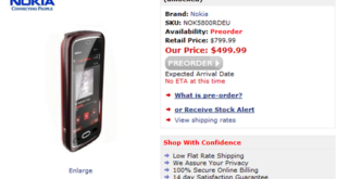 Oramai ci siamo, il primo telefono touchscreen targato Nokia sta per arrivare, precisamente il 2 ottobre. In uno store Americano è già apparso in preordine ad un prezzo molto interessante. Prezzo Ufficiale 799$ Prezzo di vendita 499$, che equivalgono a circa 320 euro. La versione commercializzata è Unlocked e la …