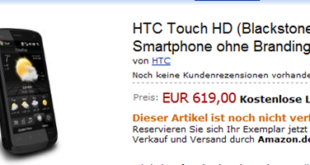 La domanda di molti utenti è: ma quanto costerà il nuovo Touch HD?? Una prima idea finalmente ce la possiamo fare! Sul sito amazon.de è apparso in pre-ordine il al prezzo di 619 euro. Ma non esultiamo, poichè, cercando nella rete ho trovato anche questo prezzo…849 euro!! Precisamente su mobilestyle.it …