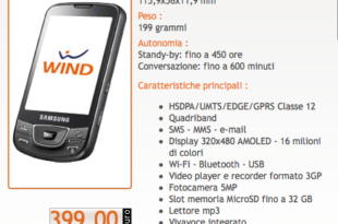 Il nuovo Samsung Galaxy, sarà disponibile a partire da Lunedì 13 Giugno in tutti i negozi WIND al prezzo di 399€ Ma come segnalano gli amici di HdBlog, si tratta solamente di un offerta limitata!! Il prezzo di 399€ è destinato ai primi 1000 pezzi!!
