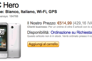 Dopo aver provato la nuova e fantastica interfaccia Htc Sense, mi è venuta voglia di Hero.. Eccolo disponibile dal 11 Luglio 2009 sul sito eXpansys al prezzo di 515 € Versione Italiana no brand.. Mi sembra un pò caro, vediamo se si trova a meno di 500€ {IMU_88_31}