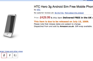 Il nuovo HTC Hero appare nello Shop Online Amazon UK. Il prezzo del terminale senza Sim Lock è di 429 sterline, circa 505 € al cambio {IMU_120_60}
