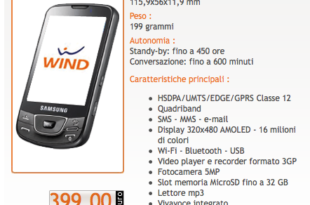 A sorpresa il carrier Italiano wind inserisce nel suo listino il nuovo Samsung Galaxy. Il prezzo è molto interessante, 399€ senza abbonamenti o vincoli vari. Ben 50€ in meno del suo rivale Htc Magic, venduto a 449€ da Tim e Vodafone. {IMU_120_240}