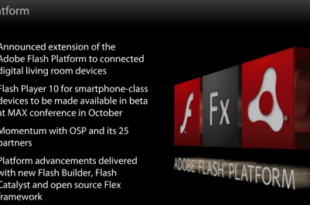 Con una nota ufficiale, Adobe annuncia l’ arrivo della prima beta per il suo FlashPlayer 10. Finalmente!! Questi i sistemi operativi che lo supporteranno : Windows Mobile Android Palm WebOS Symbian Fuori dal gruppo rimane Apple, che non crede in Adobe ma sembra puntare nel linguaggio HTML 5 {IMU_160_600}