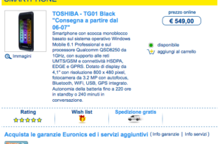 Il padellone Toshiba TG01 arriva in Italia. Lo si può acquistare OnLine dal sito di Euronics al prezzo di 549€ La spedizione è prevista a partire dal 6 Luglio 2009 {IMU_120_90}