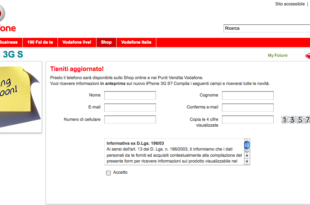 Vodafone Italia ha comunicato che sarà uno dei primi gestori a commercializzare il nuovo iPhone 3Gs Per il momento non vi è nessuna pagina dedicata, ma è possibile compilare un form per ricevere informazioni sulla disponibilità del prodotto! Compilate e sarete subito informati! 😀 {IMU_234_60}