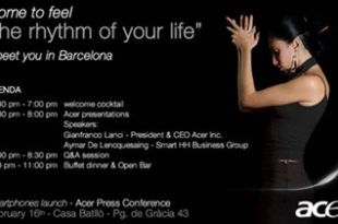 Anche ACER si getta nel campo della telefonia e annuncia grosse novità il 16 Febbraio 2009 al WMC di Barcellona. Non si conoscono ulteriori dettagli, ma sembra che il design dovrebbe essere simile agli attuali Blackbery. Aspettiamo e vedremo!! A Presto!
