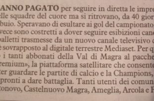 Eccomi di nuovo a parlare della assurda situazione che si protrae da oramai 50 giorni. Ben sette comuni ( un equivalente di migliaia di persone) non vedono più il segnale mediaset premium calcio da parecchio tempo. Queste persone, me compreso, hanno attivato una tessera Mediaset Premium pagando 180€ oppure attivando …