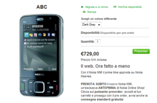 Oggi la Nokia ha ufficializzato i nuovi terminali N79 e N85 e ha aggiunto qualche notizia al prossimo Nokia N96!! Sembra che dal primo settembre sia disponibile prenotarlo sul sito Nokia Shop!! Con la spedizione prevista per il 15 di Settembre..Notate il nome ancora provvisorio ABC!! Finirà finalmente questa attesà?? …