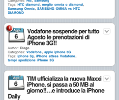 Il nuovo Gioellino 3G è entrato a far parte della mia scuderia tecnologica e allora ho pensato di renderlo compatibile con il mio blog. Se avete un iPhone 3G/2G o un iPod Touch, collegatevi con safari a www.tecnophone.it , troverete una versione ottimizzata per il vostro Gioiellino!! Ecco alcuni ScreenShot!! …