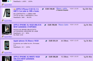 Oggi per curiosità ho cercato il gioiellino 3G su Ebay e sono rimasto allucinato dai prezzi!! Ecco uno screenShot con alcune offerte ( si fa per dire…) Questo è incredibile.. Millesettantacinque EUROOOOOO!!! importato da Hong Kong?? Ma il TOP è questa.. Chiaramente sono offerte fasulle, ma vi ricordo che i …